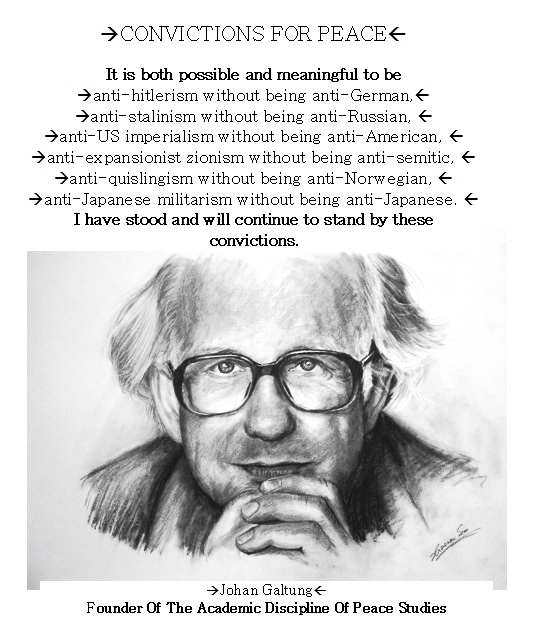 Johan was not a founder of religion but his legacy will someday show that his approaches to conflict and peace studies will have the same impact on humanity that religions seek to have. Concentrating on the positives, points of agreement, acknowledging contradictions/differences and bent on searching for solutions with which all parts could live, he focused on cultures and structures as hosts to violence – as the smoke, conflict being the fire that must be put out in order to eliminate the former.